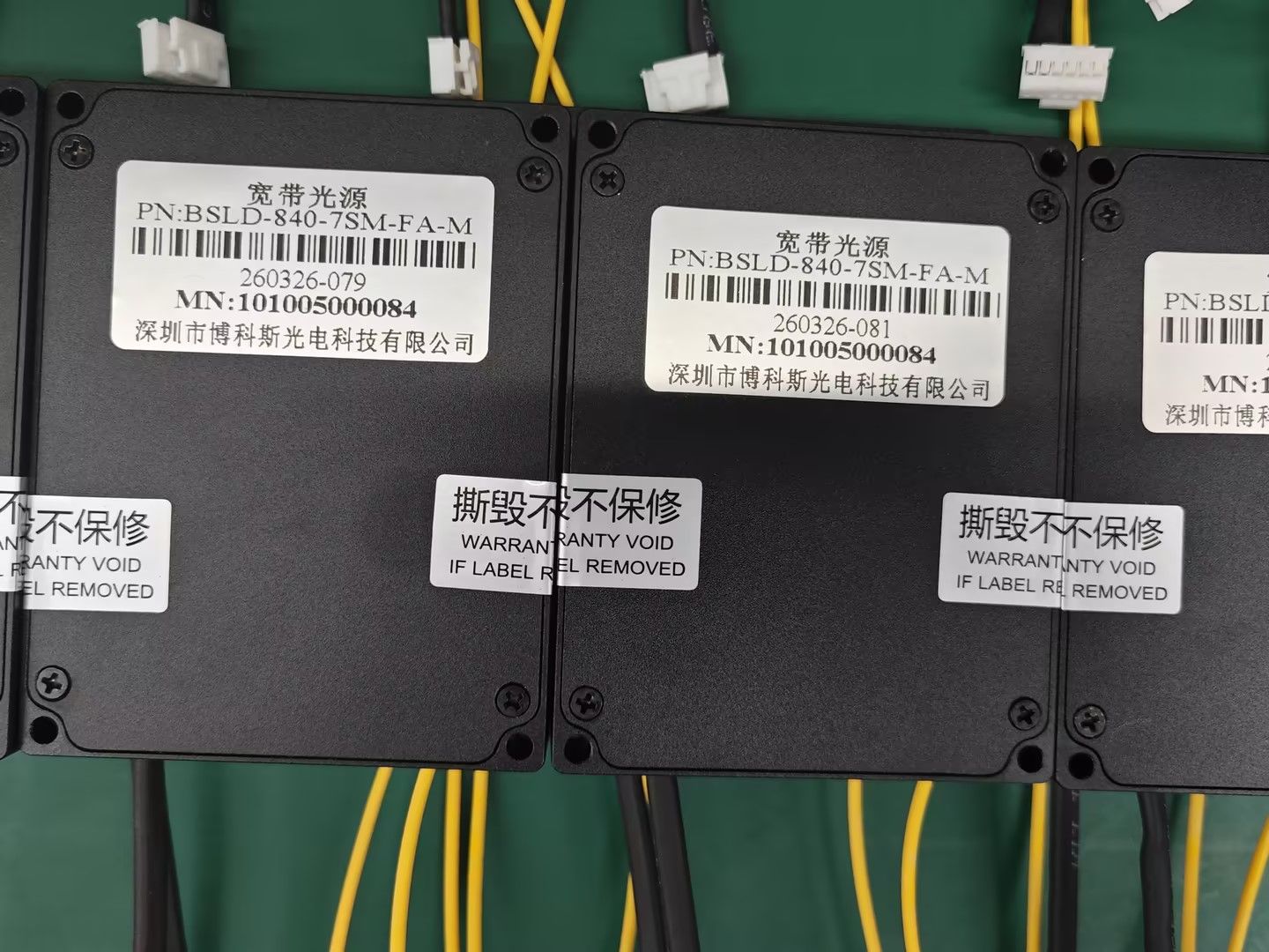 ● Pangunahing Produkto:Ang mga broadband light source module na ipinadala sa oras na ito ay modeloBSLD-840-7SM-FA-M, na nagtatampok ng malawak na spectral na output, mataas na power stability, at mababang polarization-dependent loss, na ginagawa itong perpekto para sa mga application tulad ng fiber optic sensing, optical testing, at biomedicine.